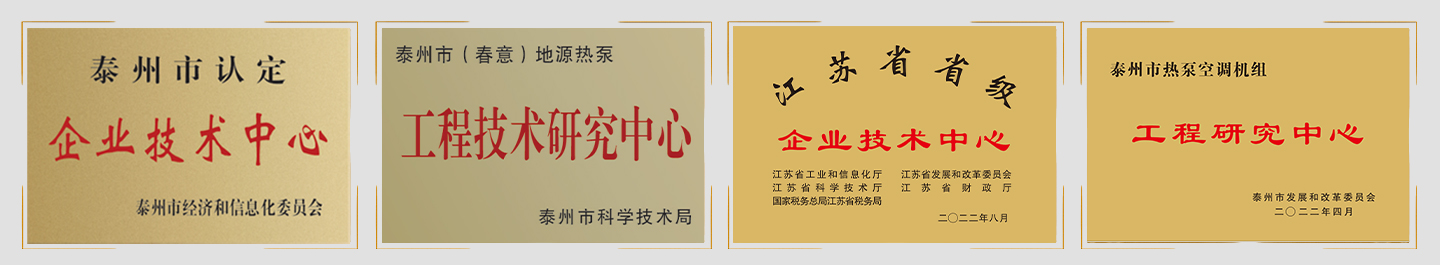 獲江蘇省高新技術企業,通過OHSAS18001職業健康安全管理體系認證,通過國家發改委、財政部能源管理公司備案,通過江蘇省泰州市(春意)地源熱泵工程研究中心認定,獲2013年度靖江市工業百優企業”、江蘇省優秀安裝企業。